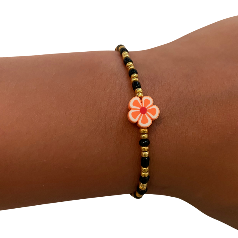 Een armbandje met goud en zwart van de nacht en oranje bloem!